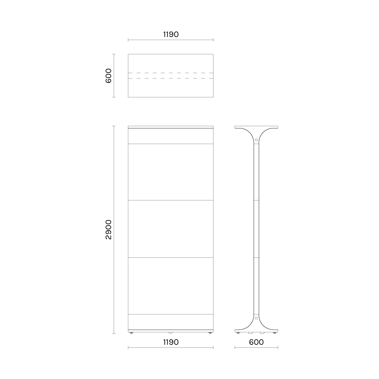 B 1190 x T600 x H2900 mm