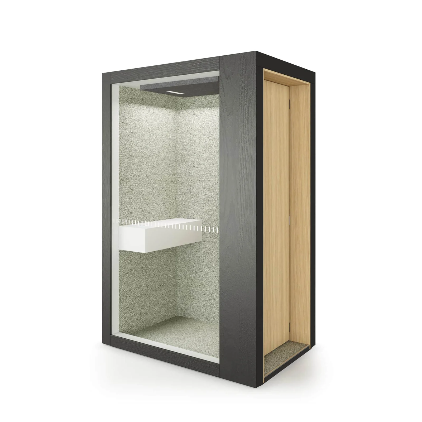 POD PHONE ist eine geräumige, schalldichte Telefonzelle oder ein Arbeitsbereich für eine Person, der die Privatsphäre verbessert und Ablenkungen in offenen Räumen reduziert.