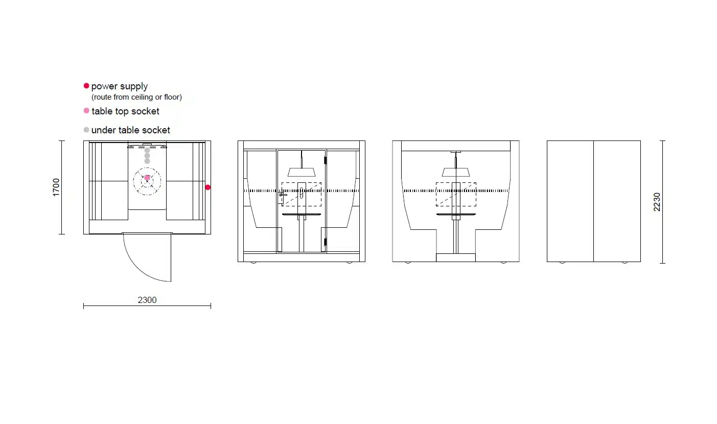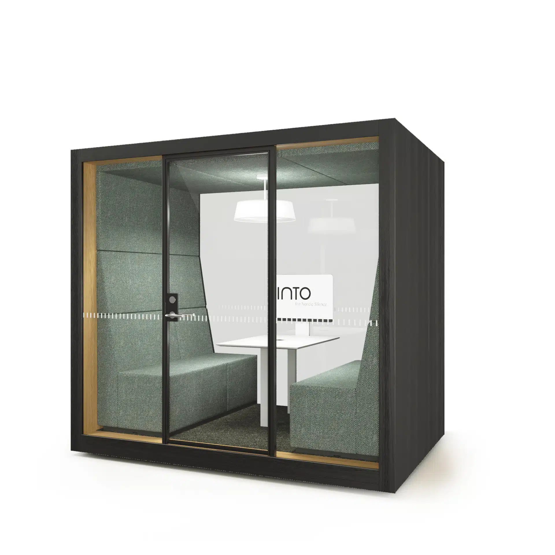 POD ROLL GLASS äänieristetty työtila on tarkoitettu 2-4 henkilölle spontaaneihin kokouksiin ja itsenäiseen työskentelyyn. Se on pyörillä varustettu työtila, jonka ansiosta sitä voidaan siirtää ja kääntää vaivattomasti tilatarpeiden muuttuessa.