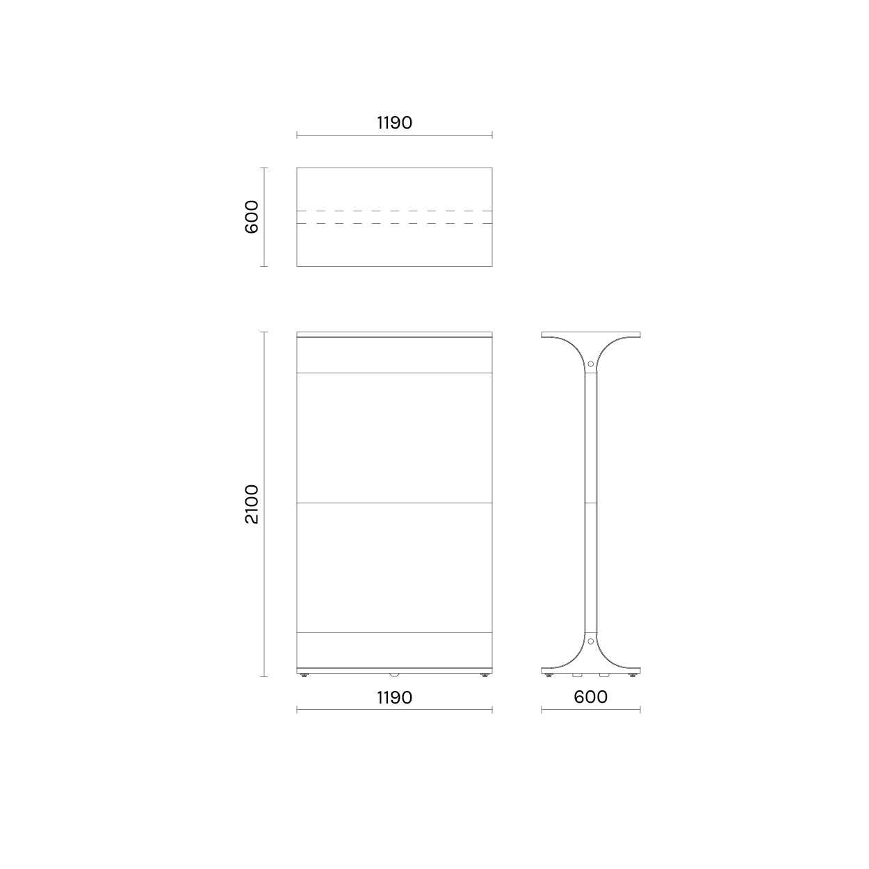B1190 x D600 x H2100 mm