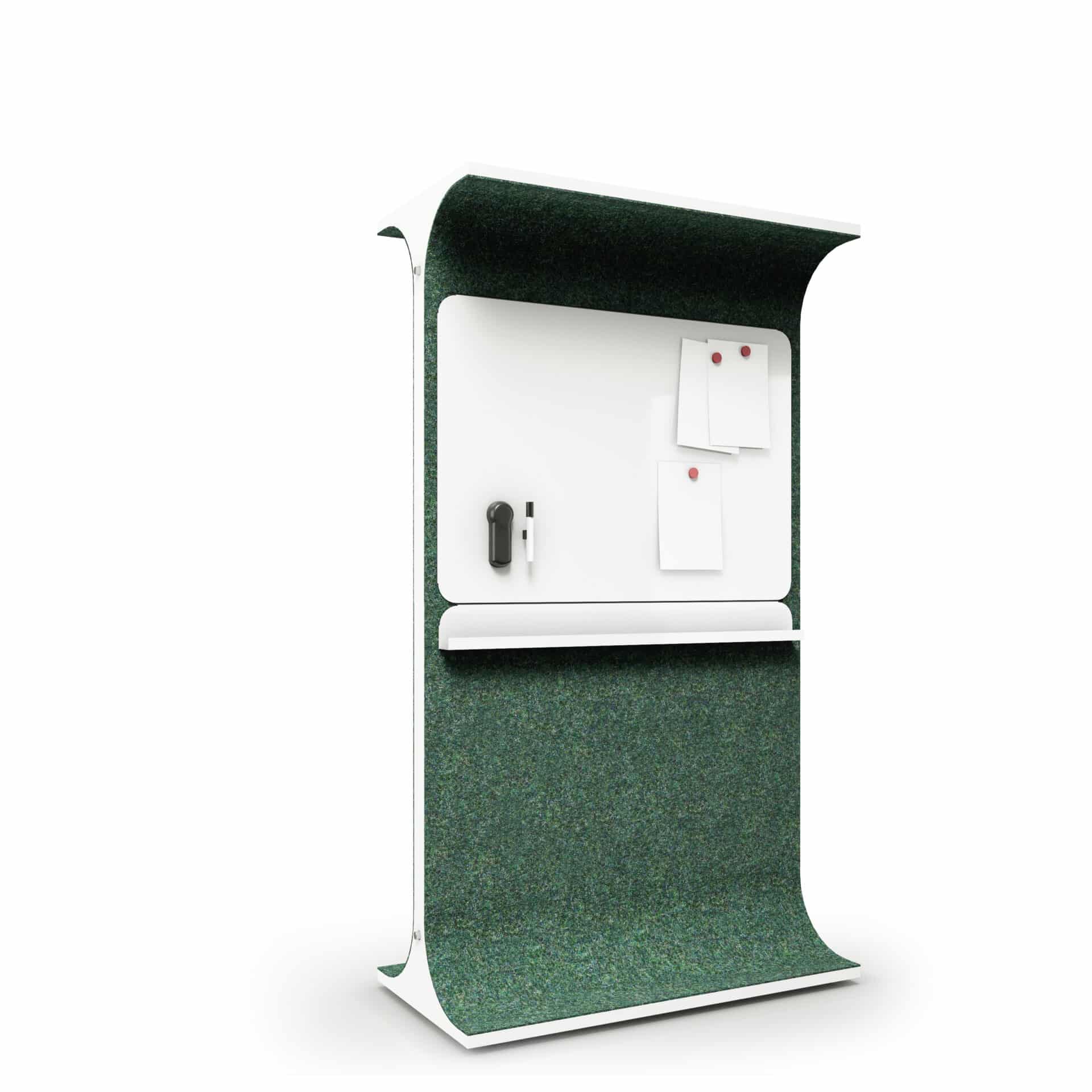 ”STORY WALL utvecklades ursprungligen för att stödja Lean- och Scrum-arbete i anpassningsbara arbetsmiljöer. Den avgränsar bordsgrupper i takt med att teamets storlek och möblering förändras under projektets gång, och kan flyttas efter behov. Ytan kan användas för att fästa projektmaterial, så den fungerar också som en synlig arbetsyta för teamet för att planera och följa upp arbetet. Den massbaserade akustiska strukturen dämpar ljud och minskar taltydligheten mellan utrymmena, vilket förbättrar arbetsron.”